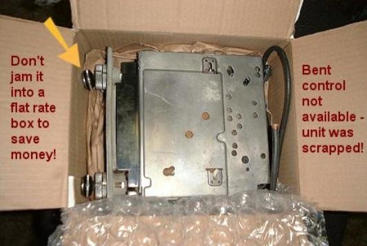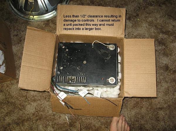 | Before we imposed strict packing requirements, we received many unit which arrived with bent of broken control shafts. As controls are no longer available except from an identical unit, one broken control can add up to $300 to the customer's bill. If a unit arrives with damaged controls during the busy seasons, we send it back unrepaired at customer's expense in order to keep up with the workflow. |